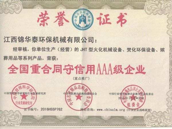 全國火化行業質量放心合格